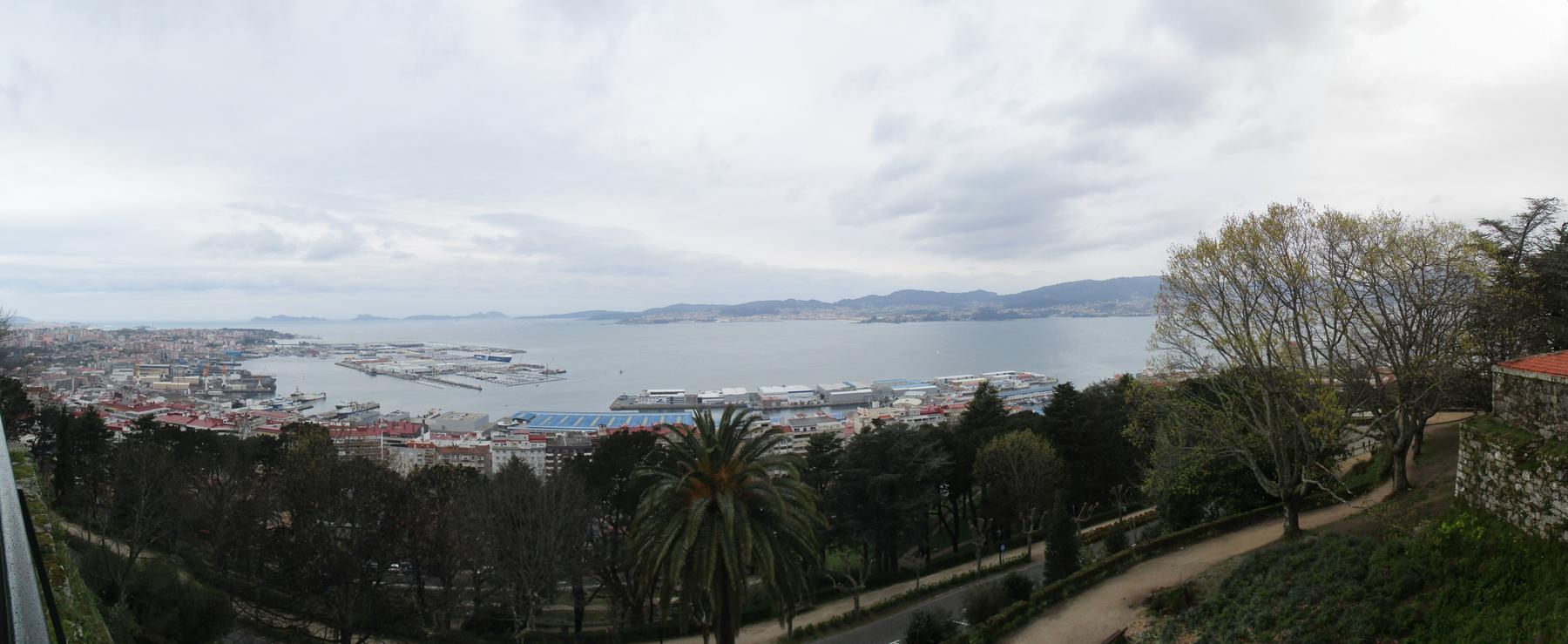 O chvíľu sme dorazili do mesta Viga. Stále popŕchalo, bola hmla a sychravo. Z výhliadok nebolo nič vidieť a tí čo nemali dáždniky boli trochu premočení. Zakotvili sme nakoniec pri obchodnom centre v strede mesta a dali sme si rozchod. Chvíľu sme vnútri počkali a hneď ako sa dážď utíšil šli sme pozrieť centrum.