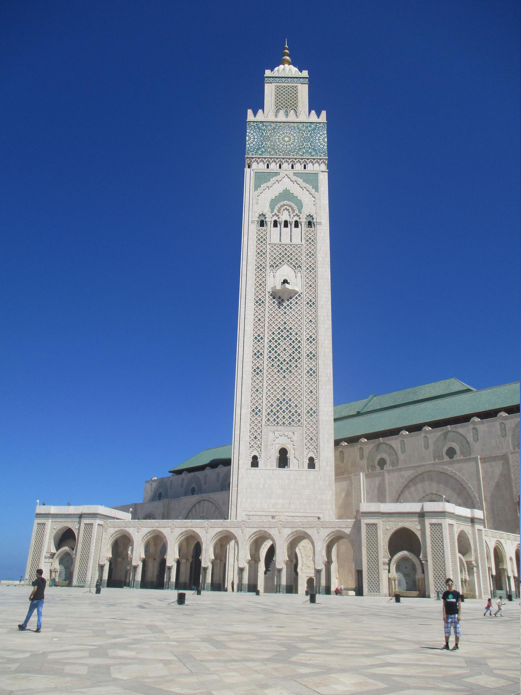 Cassablanca je najväčšie mesto Maroka so zhruba 3 milionmi obyvateľov. Ráno vstaneme, hodíme si studenú sprchu a pomaličky ideme na železničnú stanicu. Cestou sa zastavíme v jednom obchodíku, kde si nakúpime plnú tašku koláčikov, buchiet, závinov a zaplatíme asi len 12 dirhamov(1,2€). Keď prídeme na železničnú stanicu, kúpime si lístky na vlak do Cassablancy ktorý chodí každú hodinu. Pri výhode zo stanice na nástupište nám ujo štikne lístok (a taktiež potom aj vo vlaku revízor). O chvíľu príde vlak, ktorý je na ich pomery celkom dobrý - čistučký, klimatizácia funguje a vôbec nás nedrgoce. O hodinku sme v Cassablance. Za 3€ sa odvezieme taxíkom do centra k obrovskej vyzdobenej mešite. Pofotíme sa, popozeráme pláž a ideme ďalej. Prechádzme cez časť mesta z názvom Medina, čo je najstaršia časť mesta a je to ako keby obrovská tržnica - samé stránky a ľudia predávajú ovocie, zeleninu, pečivo, mäso a všeličo iné. V jednej uličke nájdeme stánok s bagetami, tak si tam dáme obed - asi za 7 dirhamov. Keď výjdeme z Medina časti, ideme na holubie námestie. Tam je fontána a okolo nej obrovské množstvo holubov. Ak chcete môžte si tam kúpiť krmovo a prilákať si tak nejakých k sebe. Ďalej ideme ku katedrále, ktorá tu bola dávno postavená. Bohužiaľ asi sa už dlho nepoužíva a začala chátrať a chapci si pred ňou kopú loptu. Teraz by sme sa mali presunúť na železničnú stanicu. Nie tú na ktorú sme prišli, ale na druhú a tá nie je až tak ďaleko. Pomaličky tam ideme pešo, cestou sa zastavíme na olovrant v McDonalde - trošku sme potrebovali zmenu a prídeme na stanicu. Podľa poriadku čo sme pozerali by mal ísť vlak zhruba o hodinu. Máme teda čas. Na stanici ale hodiny ukazujú o hodinu menej ako máme my na hodinkách a vlak do Marakéšu odchádza o pár minút. Ďalšie 2 hodiny sa nám nechce čakať, tak si rýchlo kúpime lístky a nasadneme doň. Cestou nám ale vŕta v hlave, ako je možné, že na stanici v Cassablance majú o hodinu menej ako všade inde. Neskôr sme však zistili, že v tú noc ako sme do Maroka prišli sa tam zmenil čas zo zimného na letný :D (Fail 13, prečo práve počas 4 dni čo sme tam ?). Keďže ráno do Cassablancy chodia vlaky každú hodinu, zmenu času sme nespozorovali a inde sme dovtedy presný čas nepotrebovali. A mobily si automaticky čas tiež neprestavili. Ešte šťastie, že sme kôli tomu nezmeškali lietadlo alebo niečo dôležitejšie.