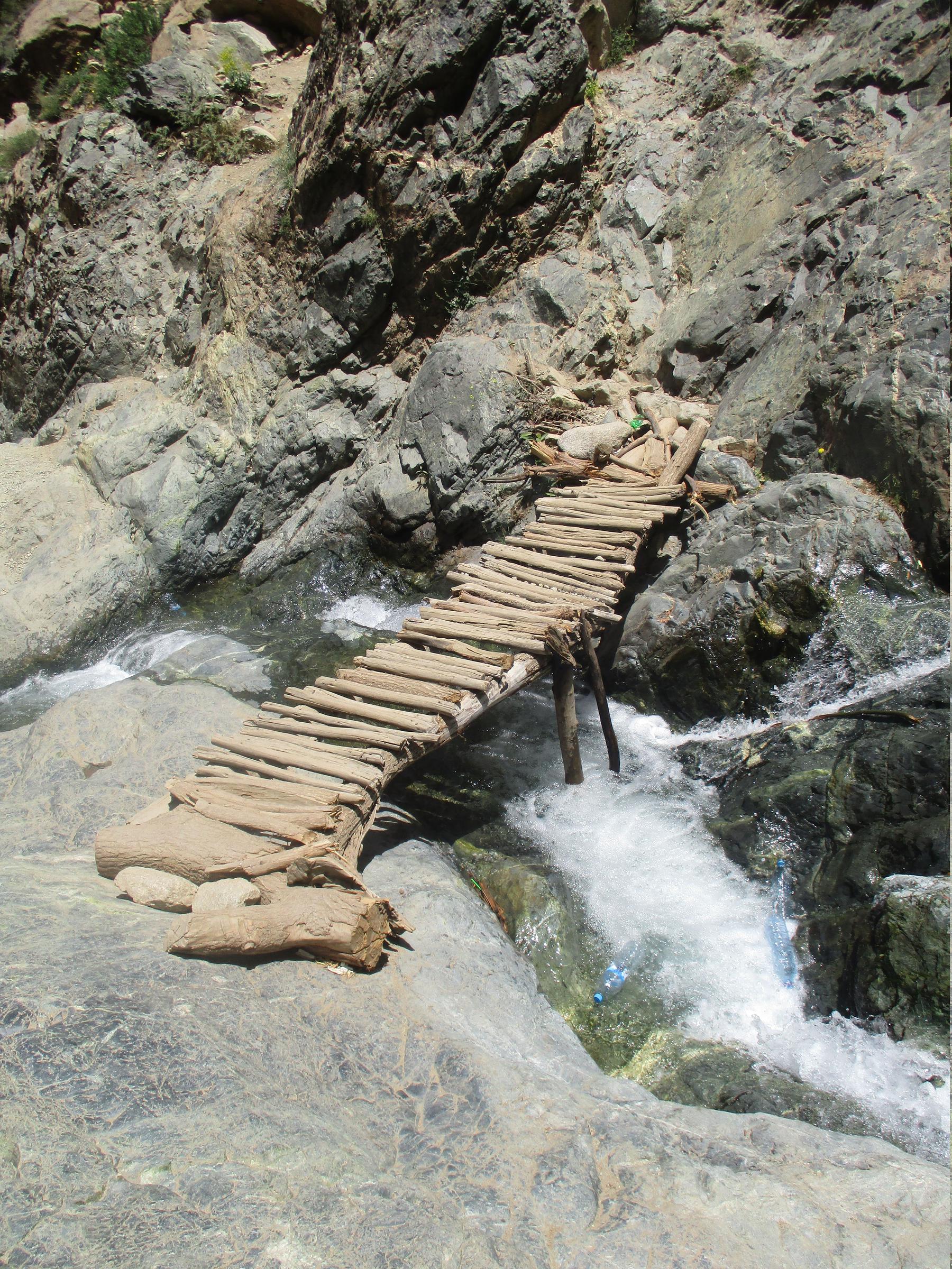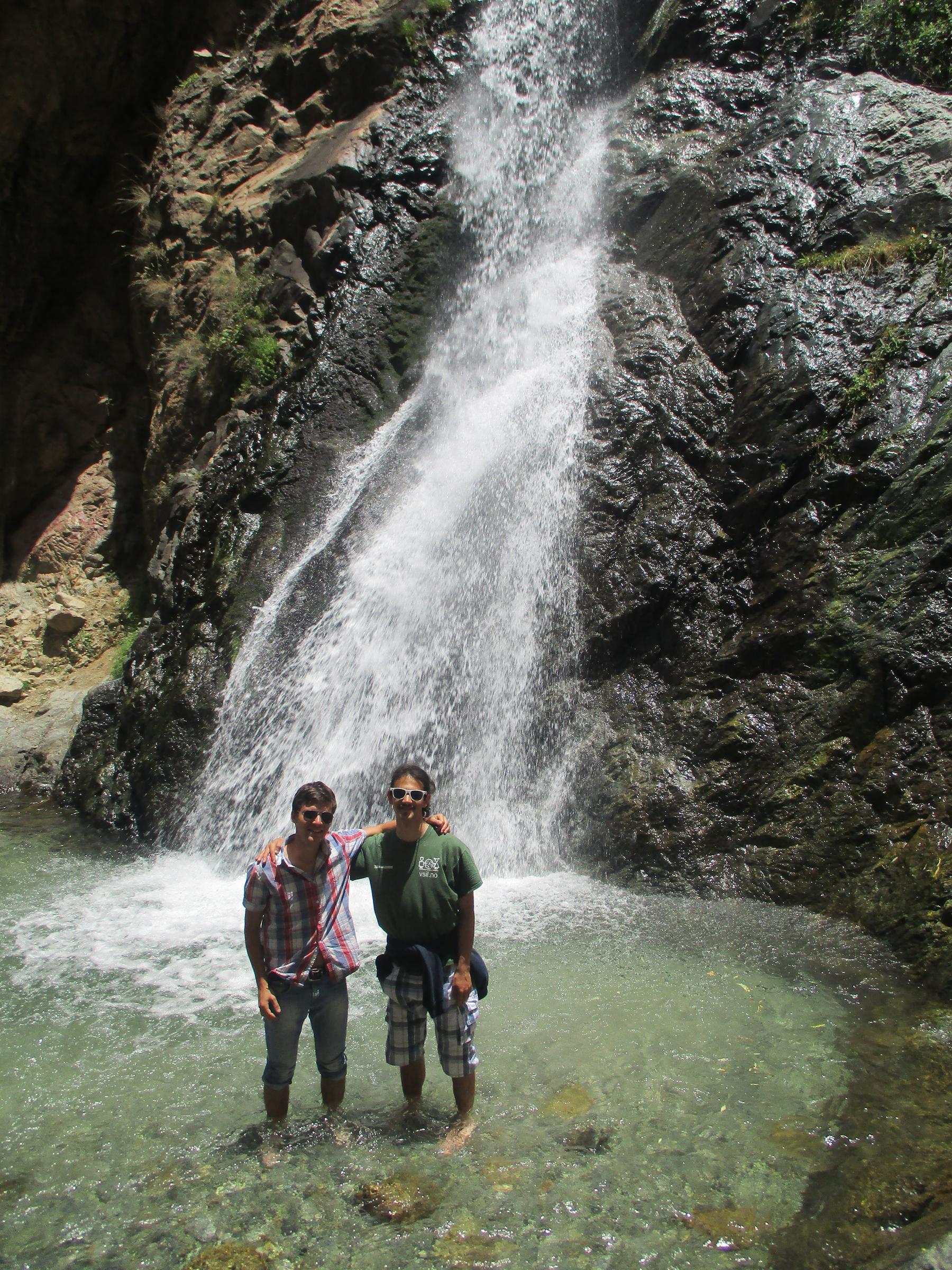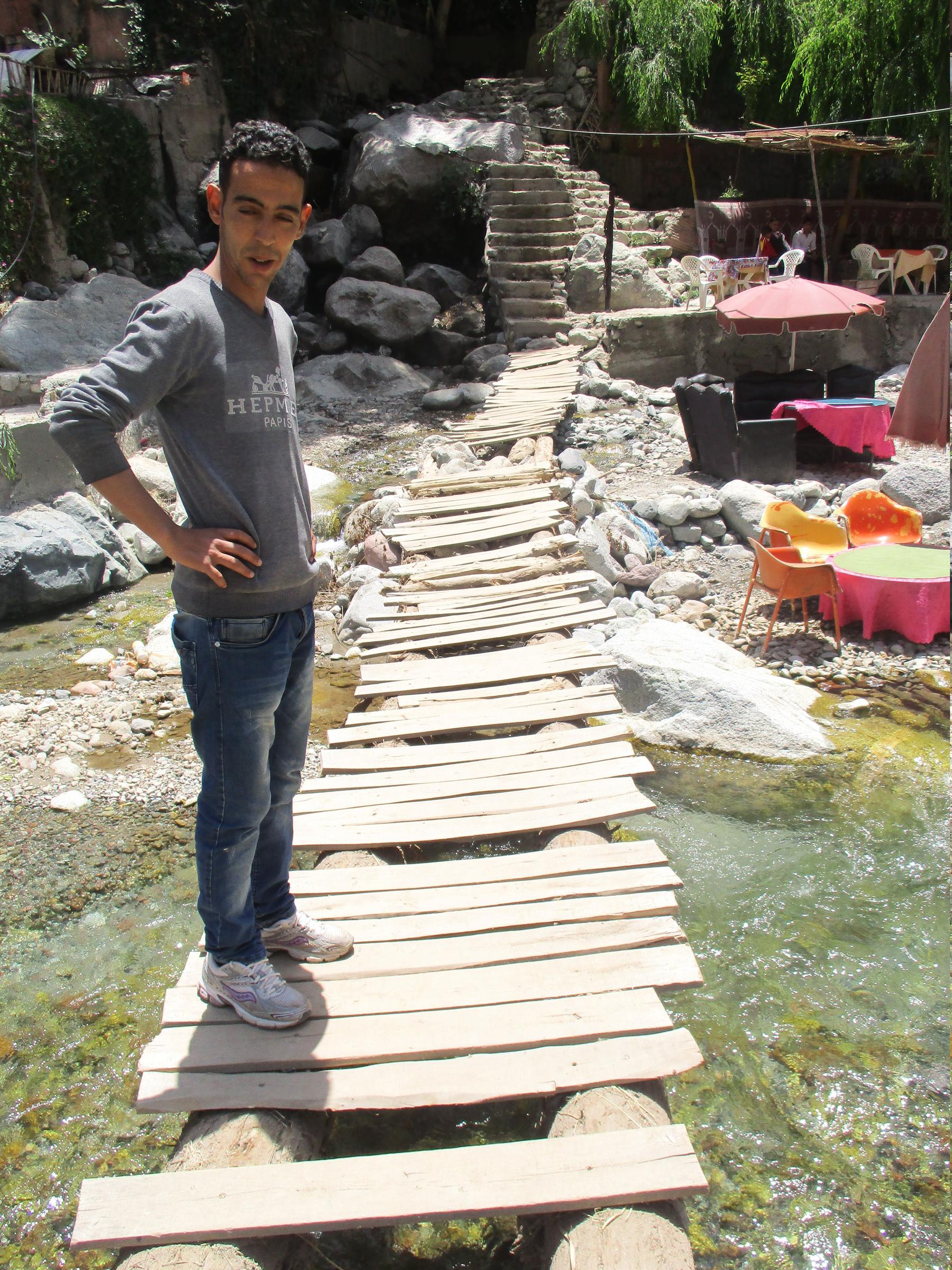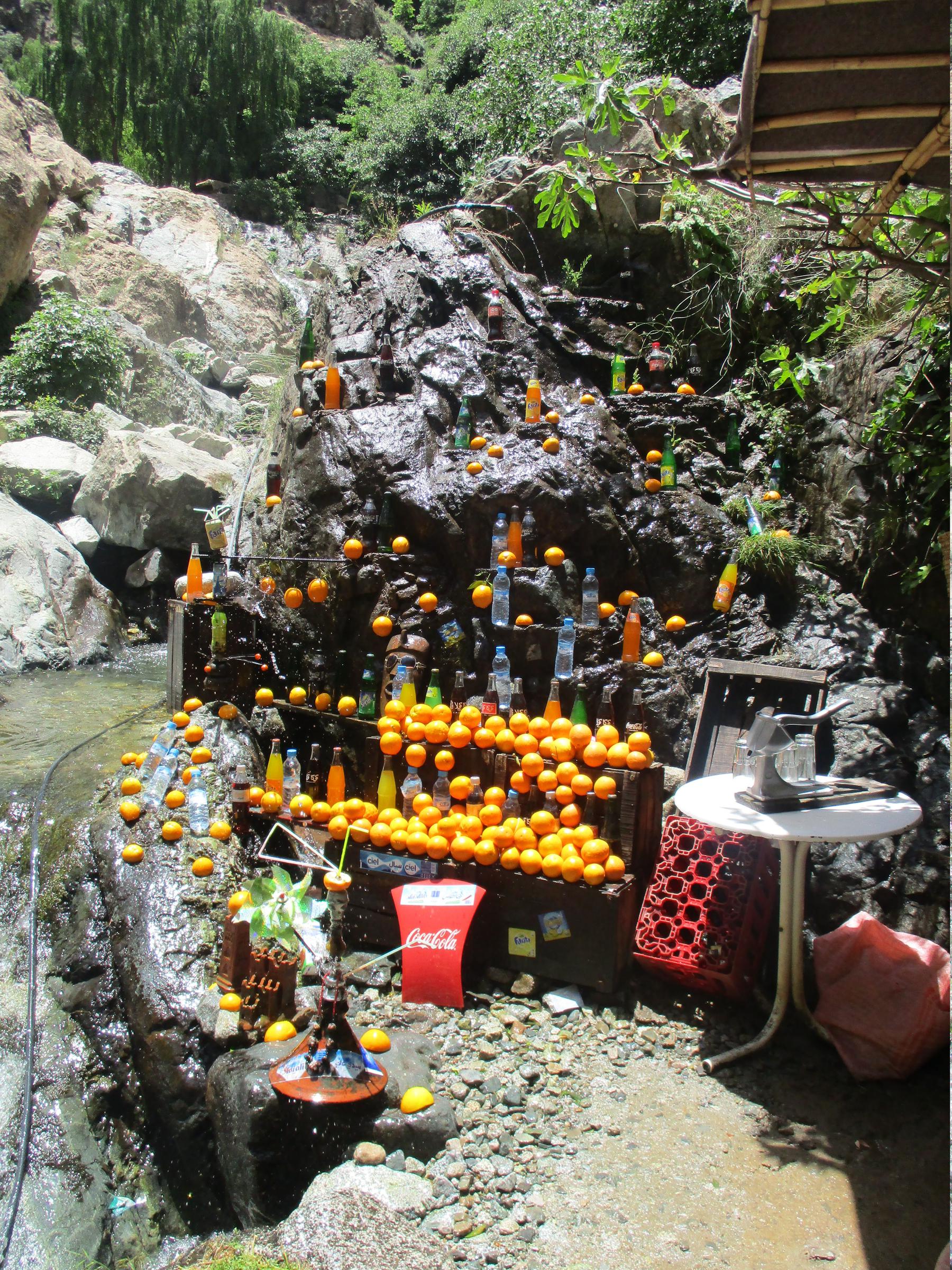O 9 čakáme na danom mieste, príde po nás auto, počkáme ešte na ostatných a keď sme všetci 7, tak vyrážame. Po hodinke cesty sa blížime k horám. Cestou zastavujeme v rôznych workshopoch tradičného marockého života a ich remesiel. Ďalšiu hodinku ideme stále do kopca, cestou zoberieme sprievodcu a o chvíľu sme na mieste. Všetci vystúpime z auta, prejdeme po lavičke cez potok a so sprievodcom ideme po chodníku smerom nahor. Po ceste stretáme dedkov tesajúcich postavičky z kameňa a stánky kde sa dá kúpiť občerstvenie. Úplne na konci je vodopád, kde chvíľu pobudneme a ideme naspäť. Po ceste máme nádherný výhľad na prírodu. Pomaly schádzme dole a o chvíľu sme opäť pri aute. Je čas obeda a preto nás odvezú k jednej reštaurácii nablízku. Trošku sme znechutení z toho, že sme vopred o tom neboli informovaní a tiež, že tam nič iné nemajú, iba Tadžín ktorý sme mali deň pred tým akurát a teraz ešte aj s vysokohorskou prirážkou. Sprievodcovi musíme tiež dať nejaký tip a tiež vo všetkých workshopoch po ceste chodili ľudia s pokladničkami a niekde viac, niekde menej nútili dávať peniaze.