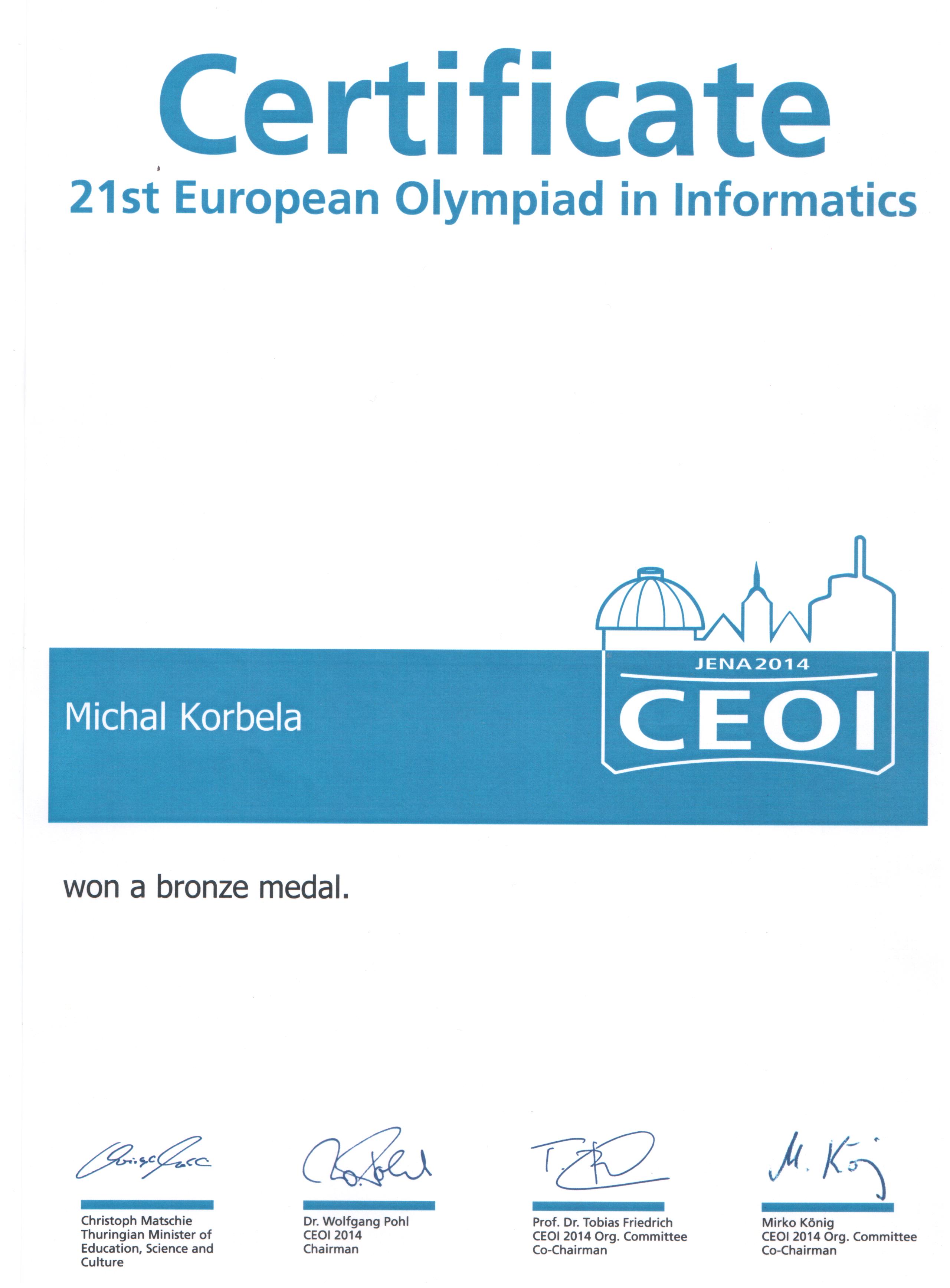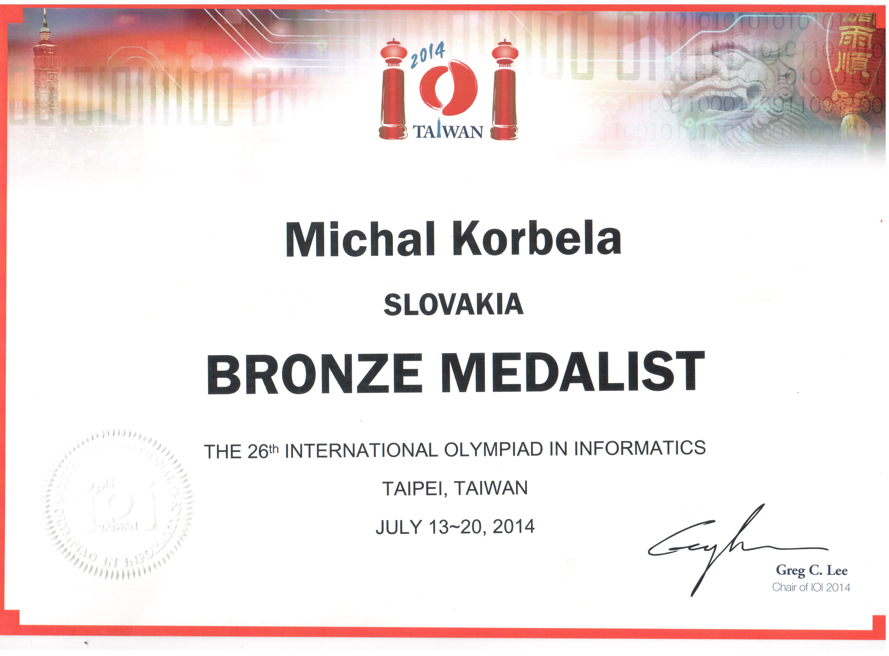 | 2014 | IOI | bronz | Diplom | |