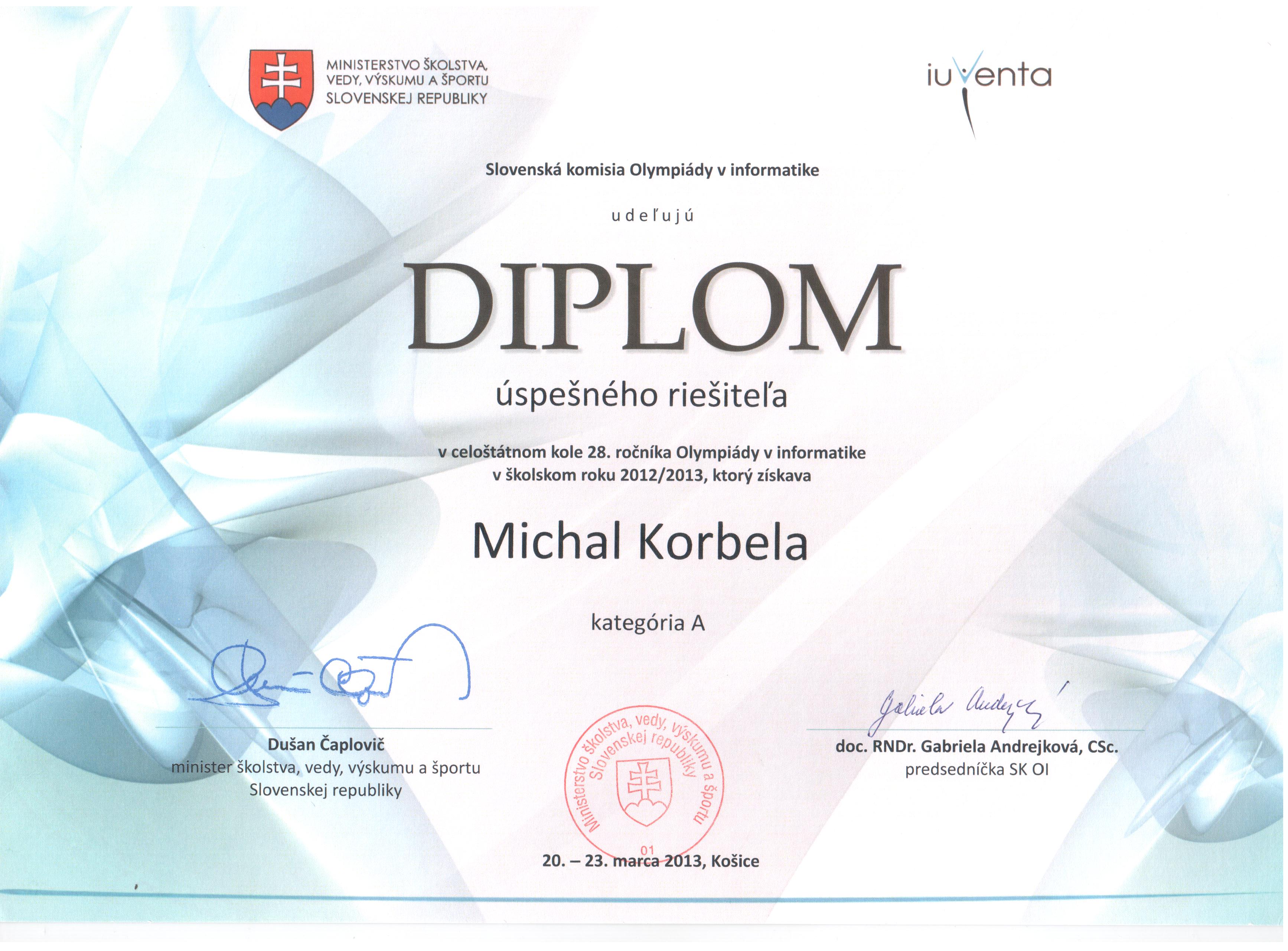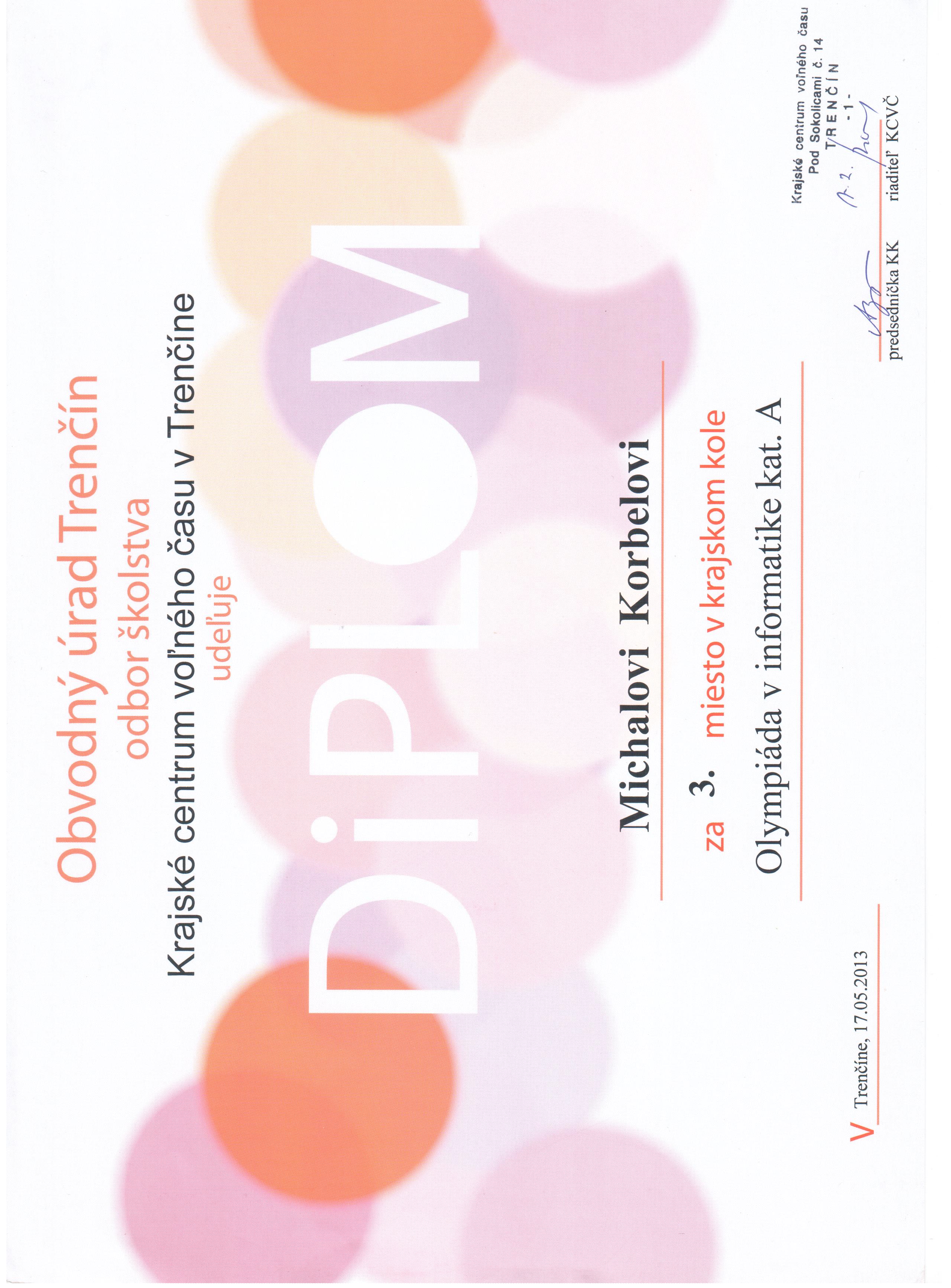 | 2012-2013 | OI kat. A | 3. miesto | Diplom | |