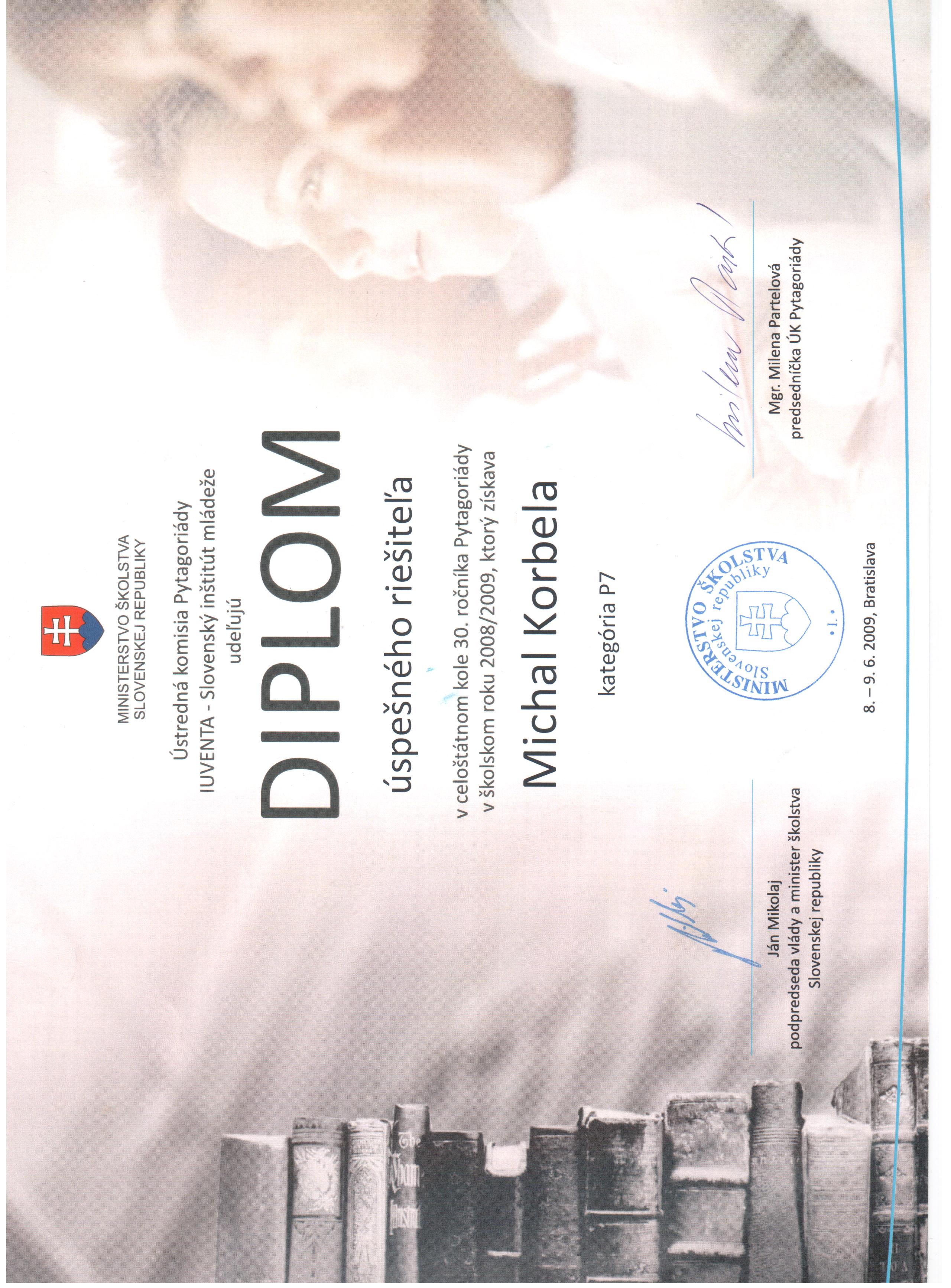 | 2008-2009 | Pytagoriáda P7 - celoslovenské | 9. miesto | Diplom | Prvý krát na IVS |