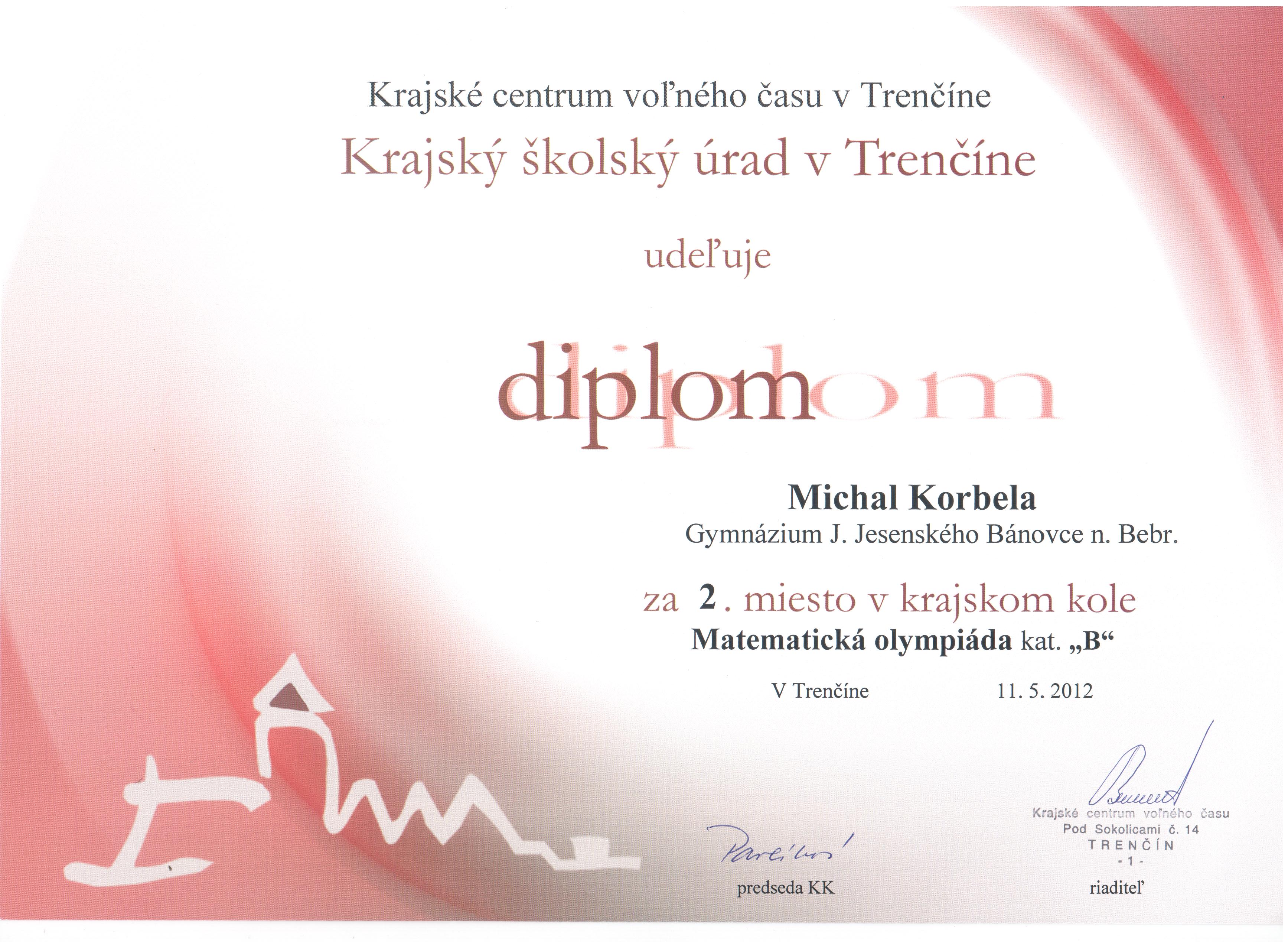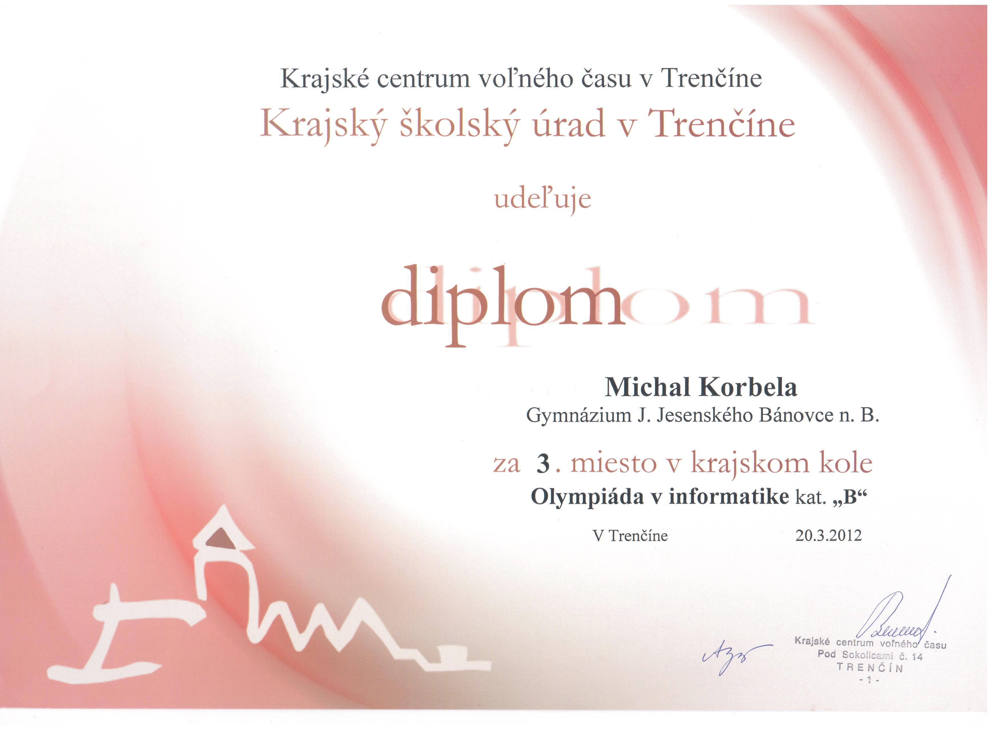 | 2011-2012 | OI kat. B | 3. miesto | Diplom | |
