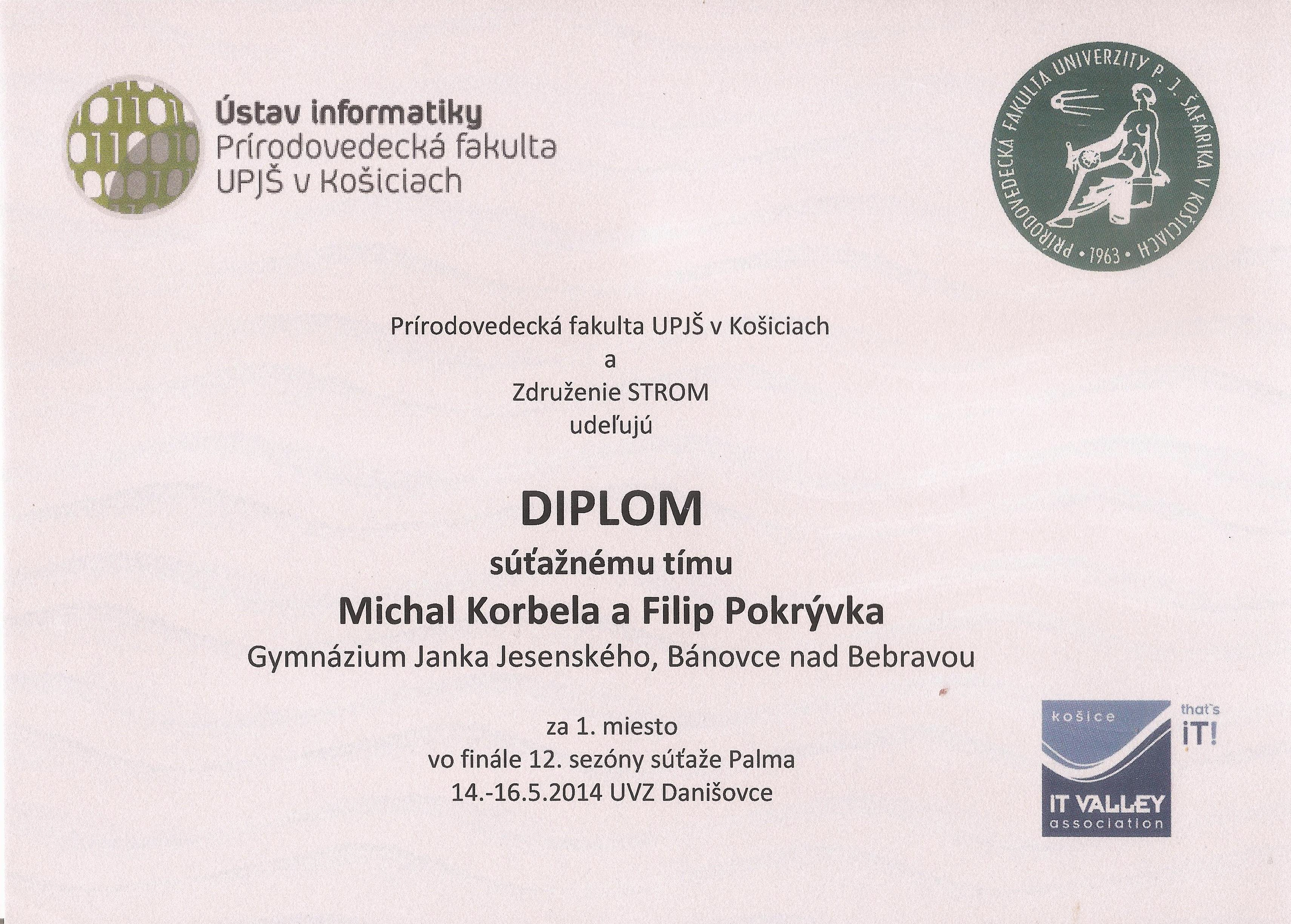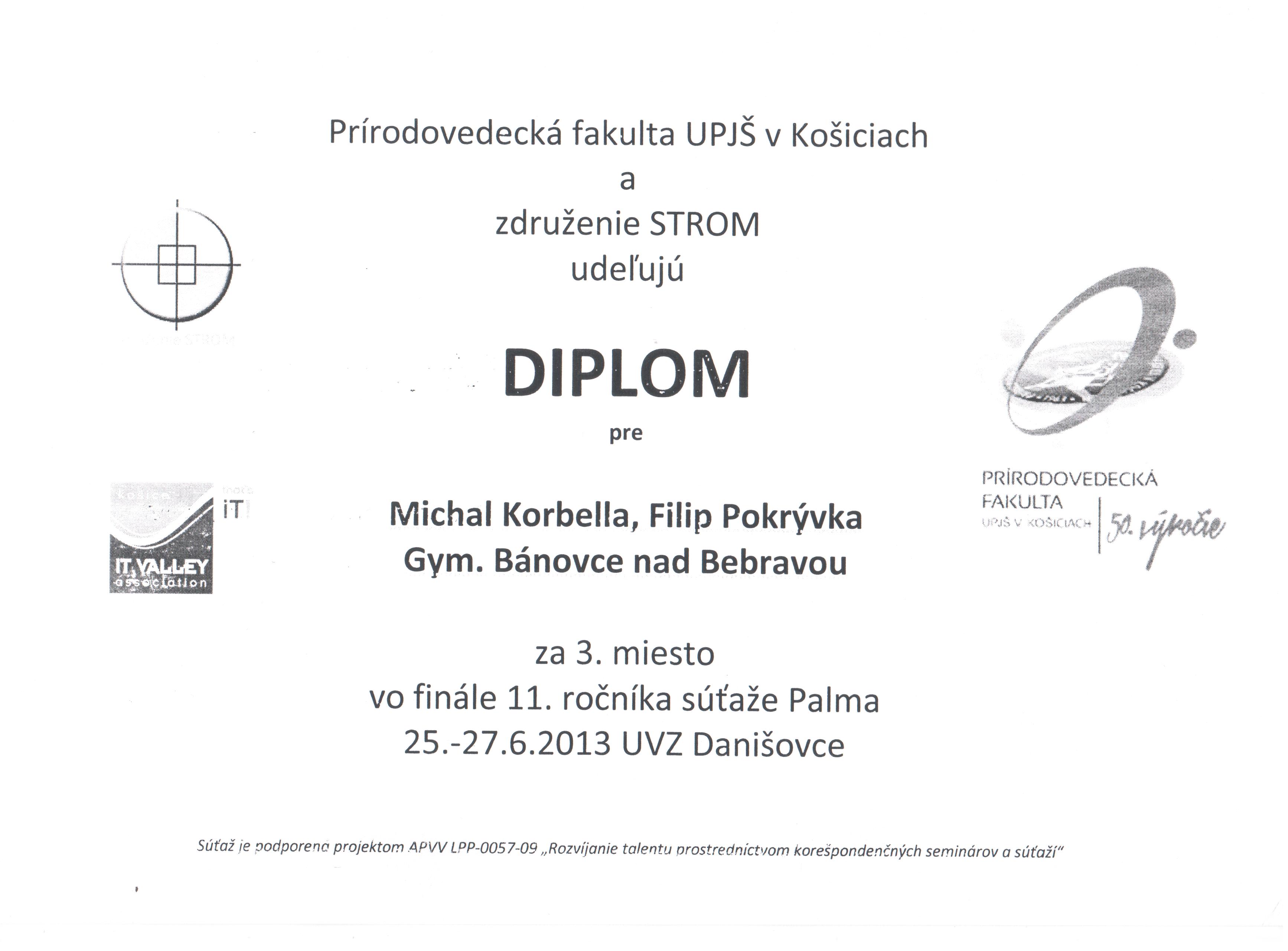 | 2013-2014 | Palma - celoštátko | 1.miesto | Diplom | Keby Filip v domacom kole neskodil jednu jedinú úlohu, tak by sme sem asi nešli |