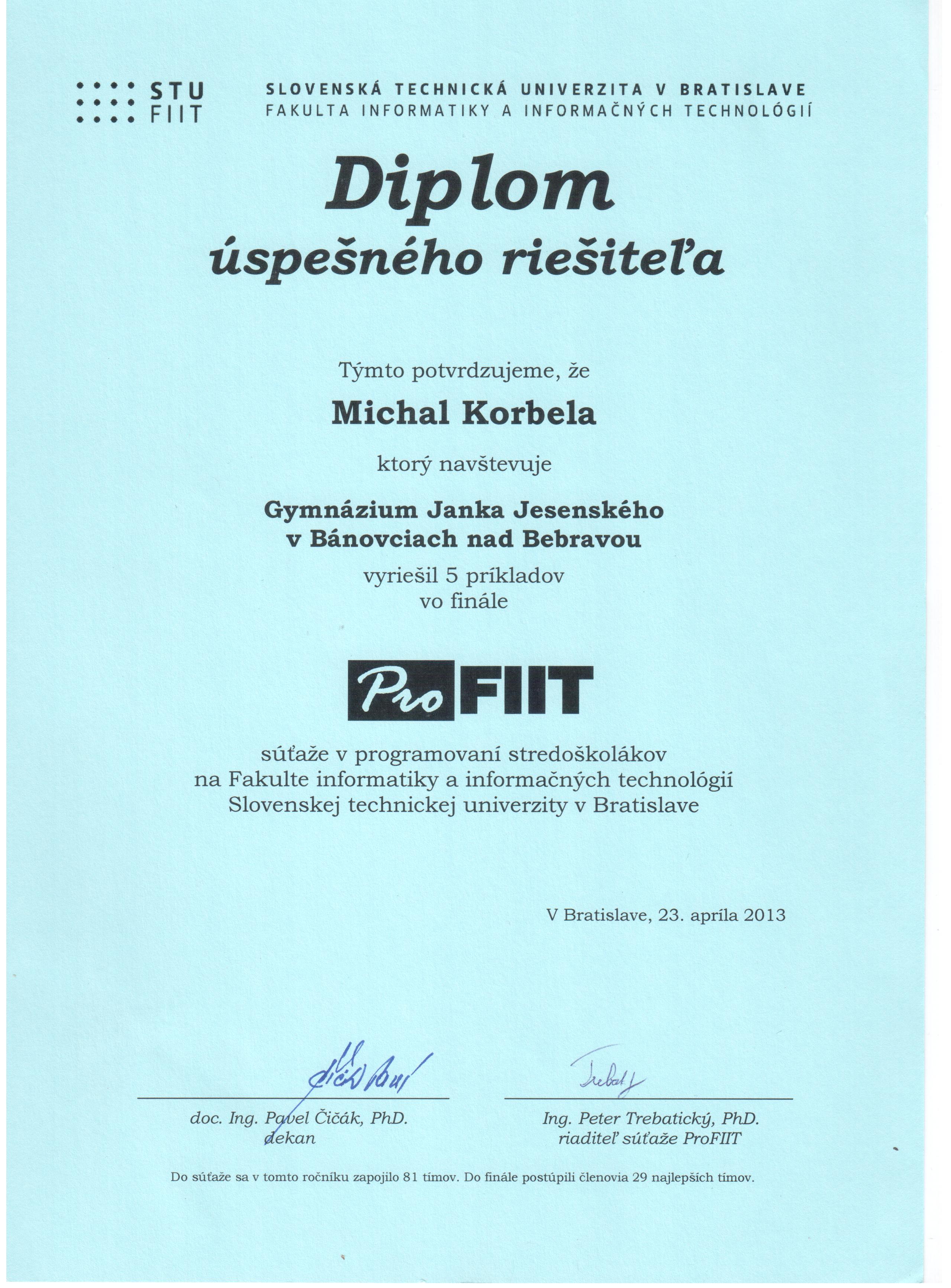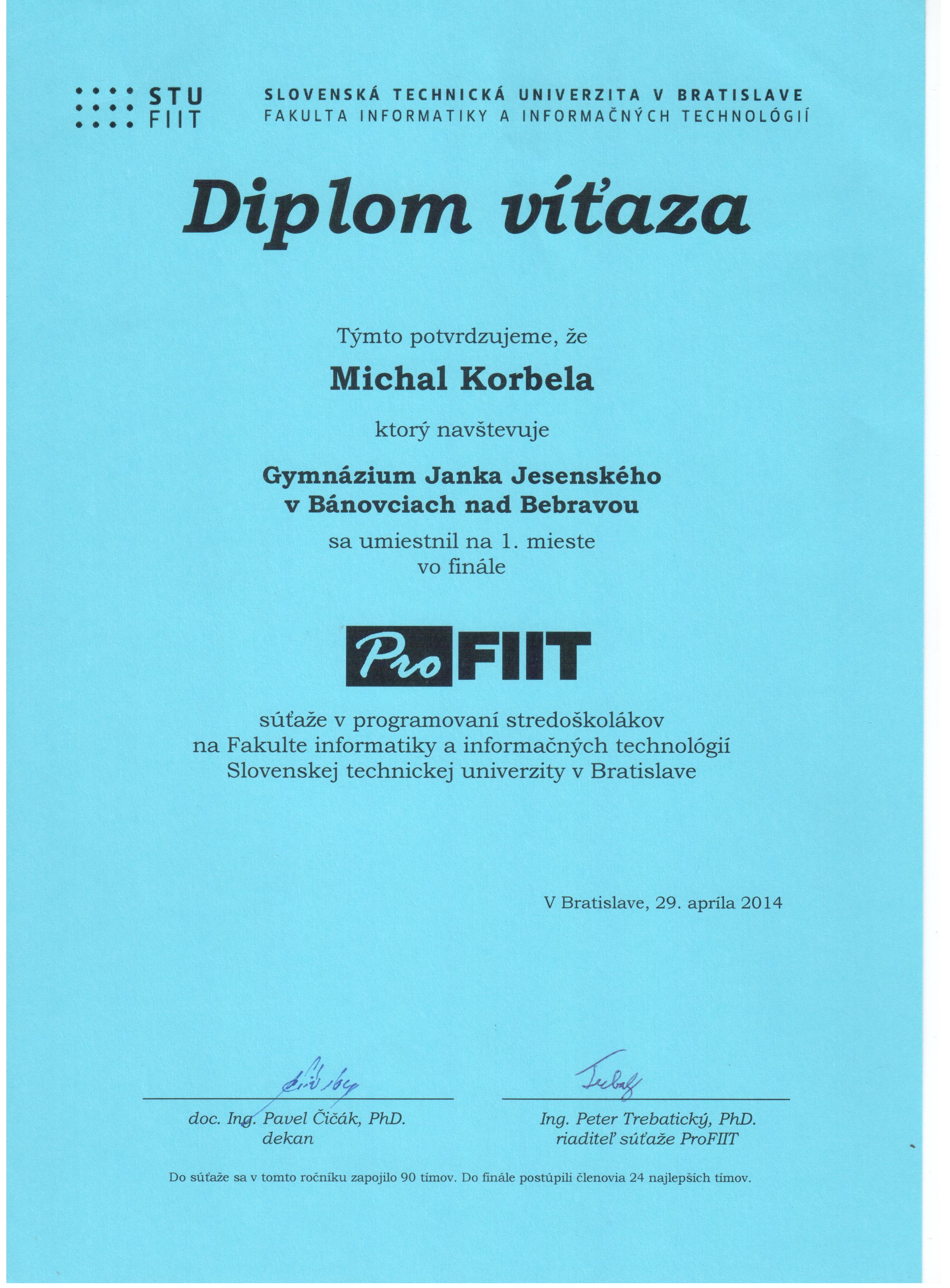 | 2013-2014 | Profiit | 1. miesto | Diplom | |